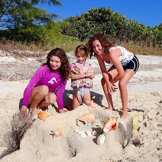 Wed - 3/1 Work and school. Motor sailed down to Soldier Cay and immediately after anchoring, a number of nurse sharks start swimming around the boat. Lizzy and Amber jump in and swim with these harmless sharks. We spot a barracuda and one large reef shark. Collected shells on the beach. Had an amazing pot luck dinner on "Sailin’ Shoes."